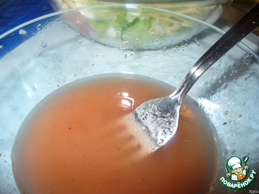 | Оригинальный салат с интересной заправкой. На любителя, но мне очень нравятся такого рода салаты. Салат для девочек. ))) Еще одна идея для использования малинового уксуса. |