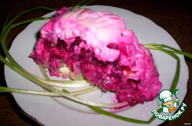 | Вариант приготовления "селeдки под шубой" , "изюминка" рецепта в использовании двух разных майонезов. |