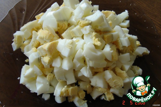 Яйца измельчить,