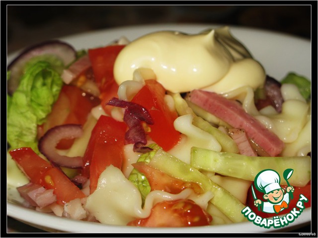 | Еще один способ приготовления салата с макаронами. Отличный вариант "утилизации" остатков продуктов:) |