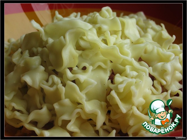 Добавить отваренные макаронные изделия (в данном варианте - лапшу).