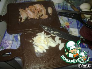 Креветки остужаем и снимаем панцири (если, конечно, вы купили неочищенный продукт).
