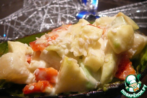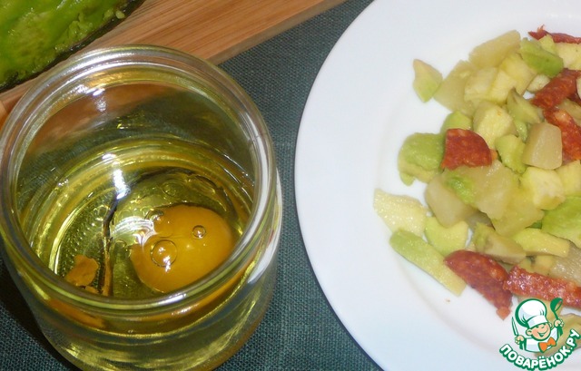 Салат из авокадо с ананасом, яблоками и сырокопченой колбасой