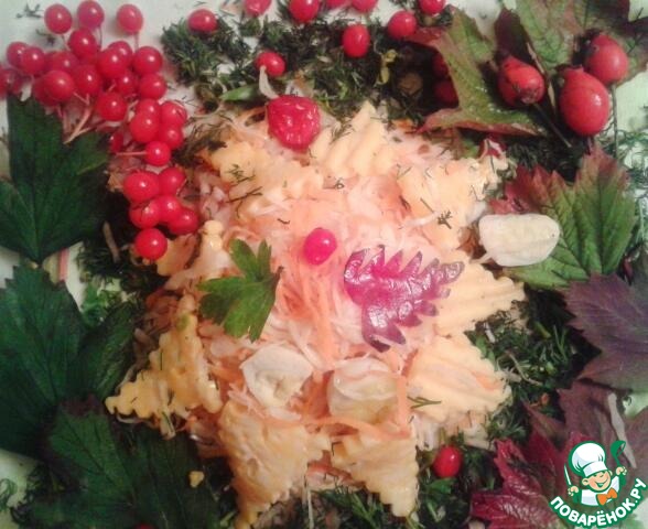 | Дорогие поварята, начались прохладные деньки. Природа готовится ко сну, окрашиваясь в теплые, золотые и багряные тона. На наших столах появляются блюда с осенними красками. Предлагаю вам приготовить салат из квашеной капусты. Мы украсим его осенней тематикой и угостим не только своих близких, но и гостей. Салат готовится быстро и не хлопотно. |
