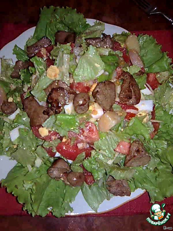 Тeплый салат с печенью кролика