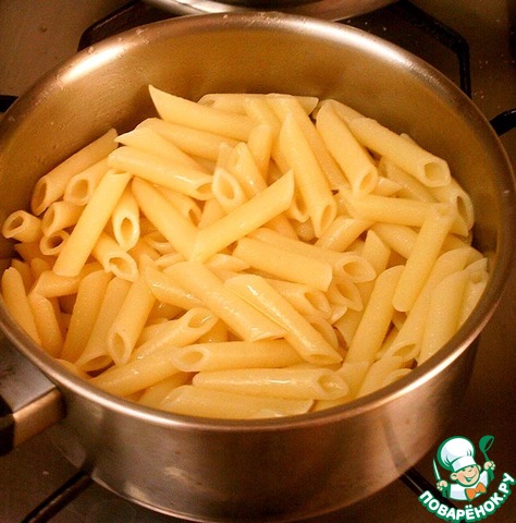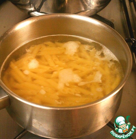 Отварить пасту в большом количестве соленой воды по инструкции на упаковке.