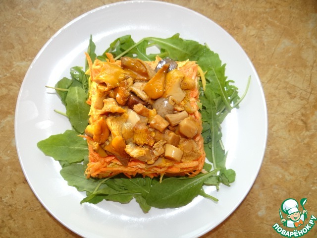 Отварные лисички выложить сверху моркови;