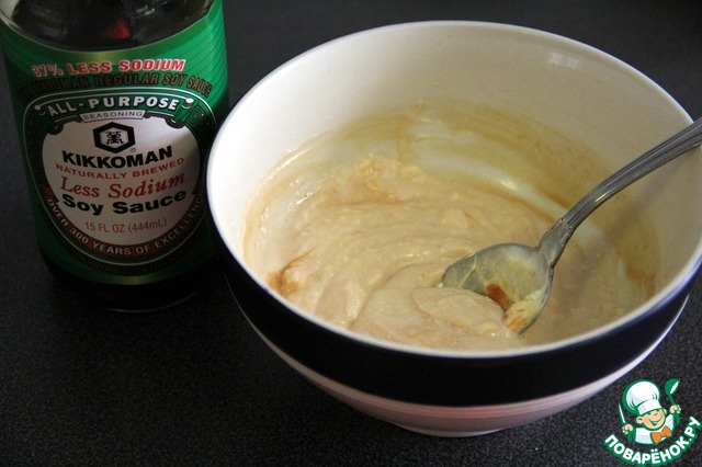 В отдельной посуде готовим соус. Майонез, кетчуп и соевый соус хорошо перемешиваем.