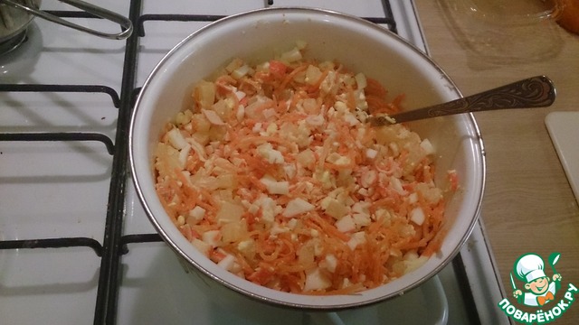 | Неожиданность - потому что союз несочетаемых продуктов дает потрясающий вкус. Но это мое название, как он на самом деле называется - я не знаю;) Рецептом этого салата со мной поделилась несколько лет назад мой руководитель. С тех пор без него (салата разумеется) не обходится ни одно застолье. |