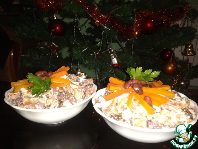 Я подаю салаты порционно, украшая его таким образом. Приятного аппетита и с новым годом!