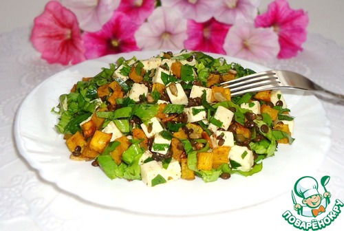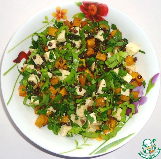 Салат из чечевицы, тыквы и брынзы