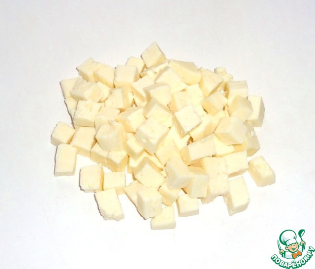 Брынзу нарезать кубиками.