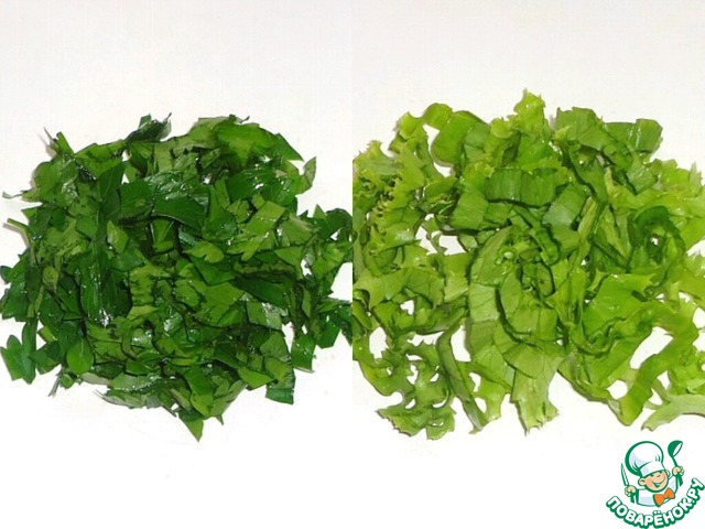 Зелень мелко нарезать.