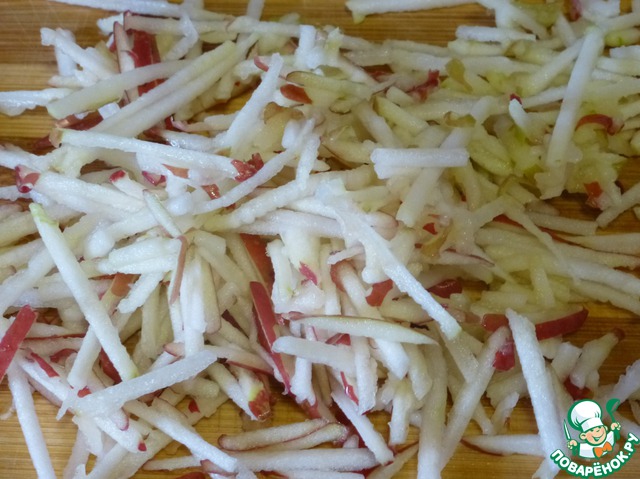 Трем на мелкой терке яблоко вместе с кожурой, так как в кожуре яблок витаминов больше, чем в мякоти.