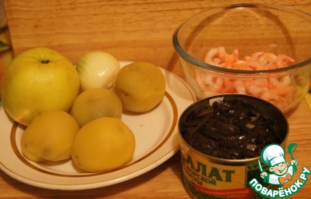 | На Новый Год мои упросили сделать салат с морской капустой. Стала искать на просторах интернета подходящий рецепт. На одном из сайтов наткнулась на вариант салата-конструктора с морской капустой. Вот мой вариант, который сразу полюбился моим домашним. Салат легкий, свежий и вкусный, а морская капуста придает особую пикантность. |