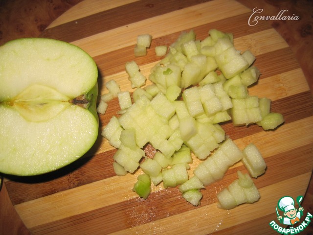 Яблоко очистить от кожуры и сердцевины, нарезать так же как и картофель.