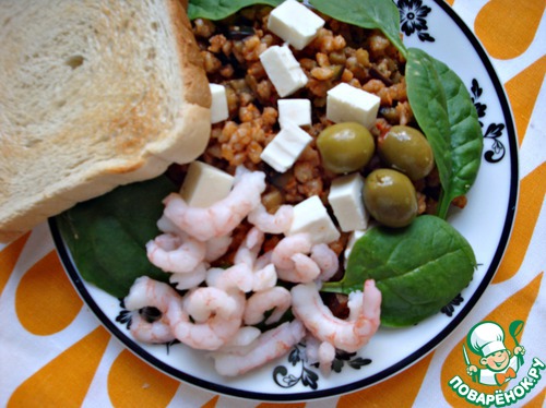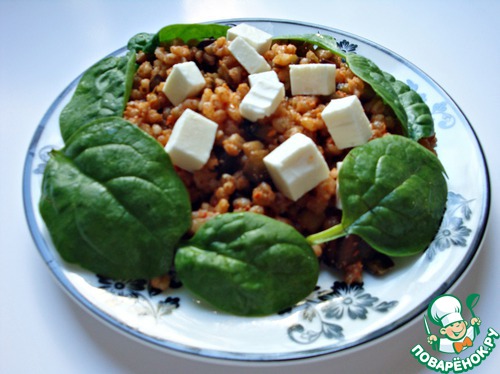 Салат из пшеницы и баклажанов с фетой и шпинатом