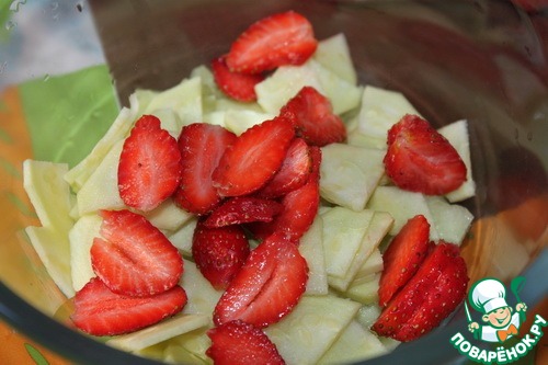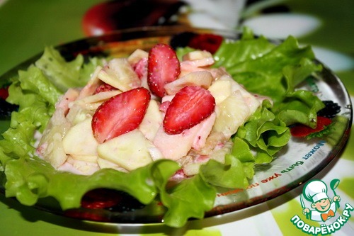 | "Экстравагантный" салат. Клубника и кабачок? Клубника и огурец? Не правда ли, необычное сочетание? Но когда это меня останавливало? :) Не спешите судить, вкус очень приятный и гармоничный. |