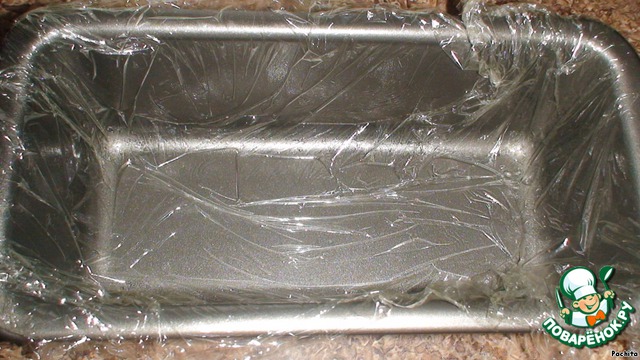 Форму, которую используем для этого блюда, смазываем растительным маслом и выстилаем пищевой плёнкой.