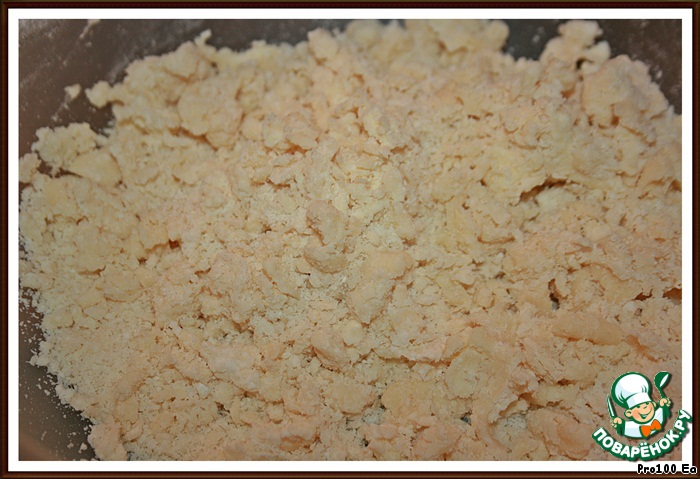 2. Соединяем соль и муку, добавляем к маслу, всё перемешать до образования маленьких комочков, можно 2 ножами, я это делала руками.