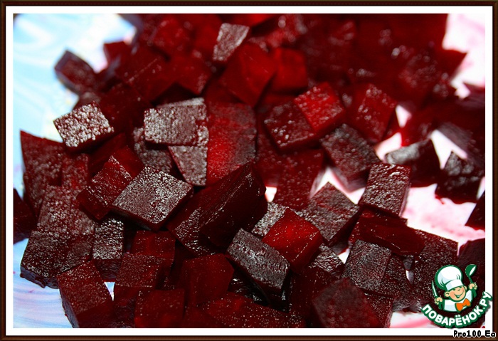 4. Варим свеклу, чистим и режем на маленькие квадратики.