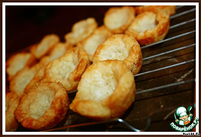 9. После 10 мин. в духовке вынуть наши корзиночки и ложечкой нажать серединки и вернуть в духовку еще на 10 минут или до золотистого теста.