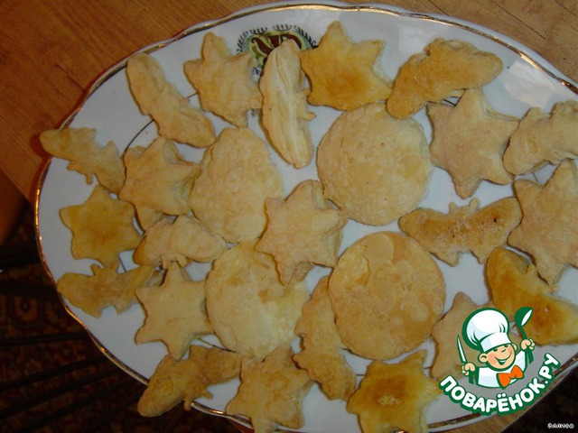 1. Берем готовое слоеное тесто, раскатываем толщиной 0,5 см.