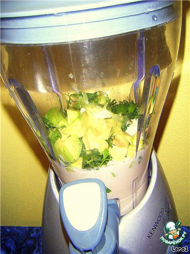 Единственно, я не солила и не перчила, а добавила меньше ряженки, так чтоб и ложечкой можно было есть и через крупную соломинку пить.