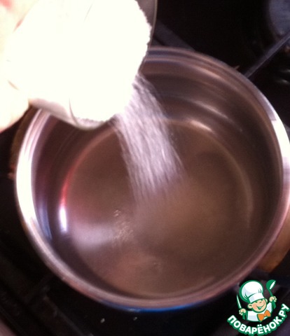 Часть водки нагреем, всыпем сахар и продолжим нагрев, пока сахар не растворится- закипеть не даем!