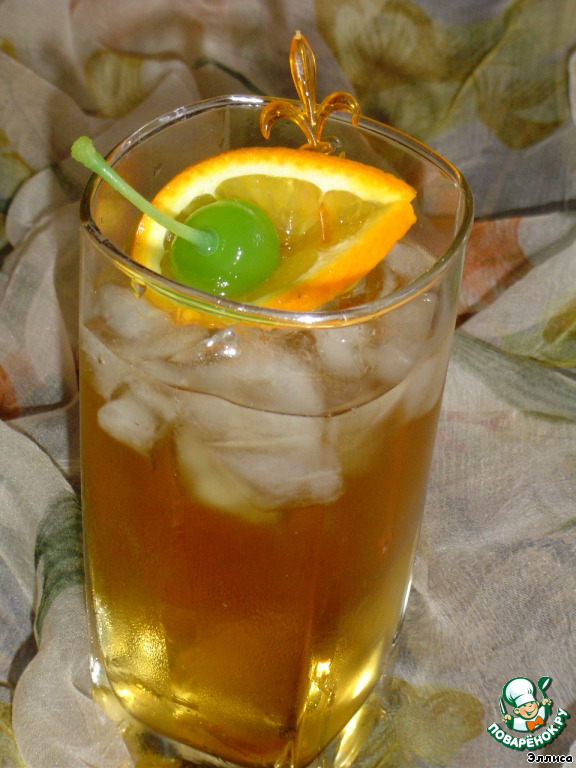 Все ингредиенты коктейля смешать в шейкере. Налить в стаканы или бокалы, наполненные льдом. Украсить долькой апельсина и коктейльной вишней.