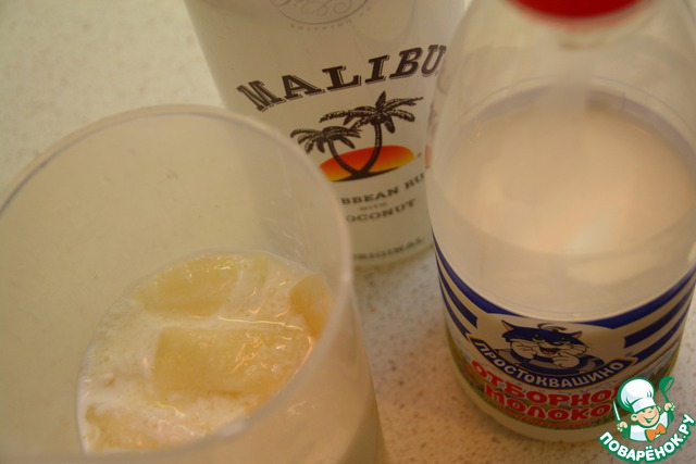 Наливаем в емкость, в которой будете смешивать, стакан молока. Если делаем алкогольный коктейль, добавляем 50 мл ликера Малибу.