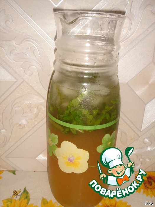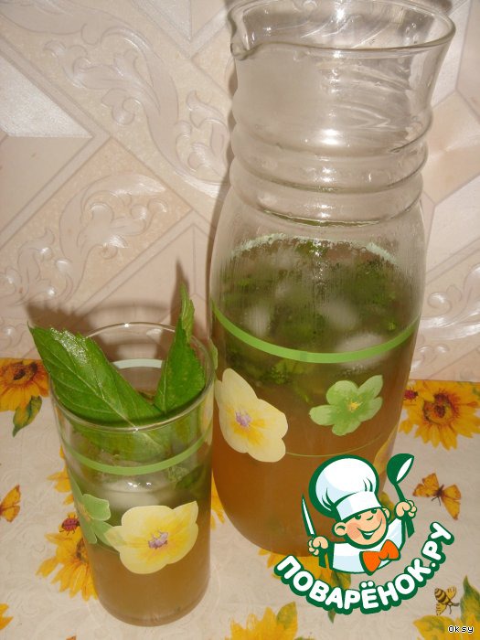 Смешать в кувшине охлажденный зеленый чай, рубленную мяту, лимонный сок и много льда.