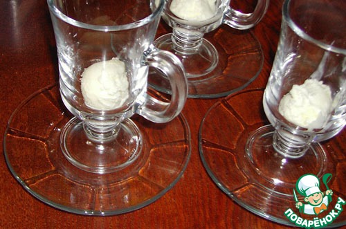 На дно бокалов уложить по шарику мороженного.