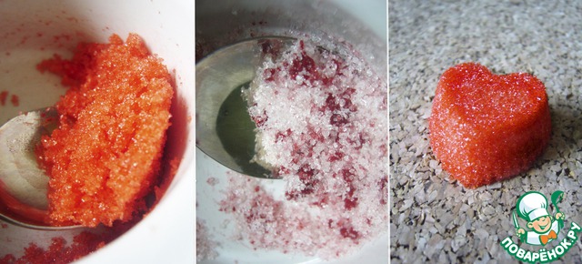 P.S. Я хочу показать, как я сделала такой цветной сахар. Для этого я взяла формочку в виде сердца, чайную ложку, сахар, воду и пищевые красители. Для изготовления одного сердечка мне понадобилось: одна чайная ложка сахара и две капли воды (или две капли жидкого пищевого красителя). В небольшой емкости я смешивала сахар с двумя каплями жидкости. Тщательно перемешанный и окрашенный сахар плотно уложила в форму. Затем вынула из формы и оставила до полного высыхания сахара. Согласитесь, что такой сахар смотрится красивее, чем обычный.