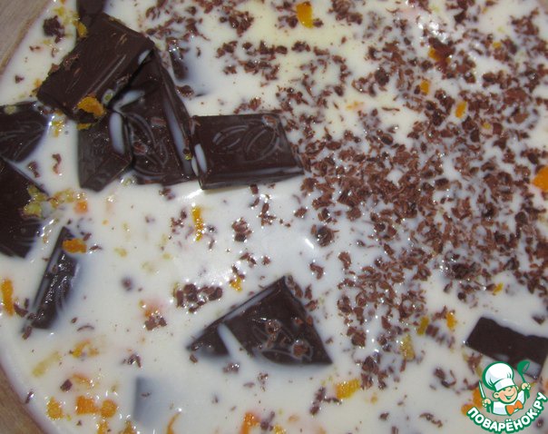 В кастрюлю положить шоколад, цедру, добавить корицу по вкусу и молоко. Можно выжать еще немного сока из апельсина.