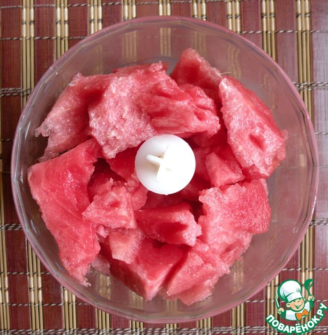 Арбуз нарежем, выберем косточки и измельчим в блендере