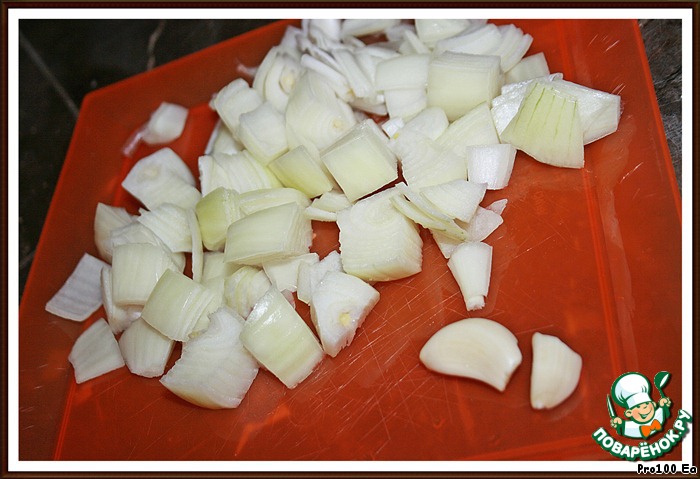 Лук нарезать и вместе с чесноком положить в блендер, сделайте пюре.