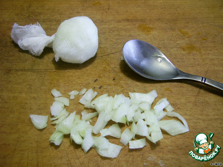 Вот таким "нехитрым" образом можно добыть сок лука (на фото).