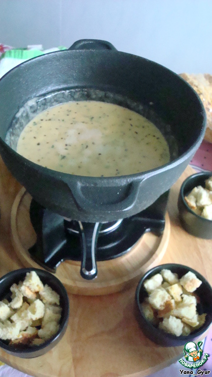 | Везде искала рецепт сырного фондю без вина и без пива. Не нашла, а сын просит и просит. Что ж, решила экспериментировать. Результатом делюсь: получилось очень вкусно, сама не ожидала такого результата, поэтому и фото по ходу приготовления не делала, но уж очень хотелось с вами поделиться)))))))) |