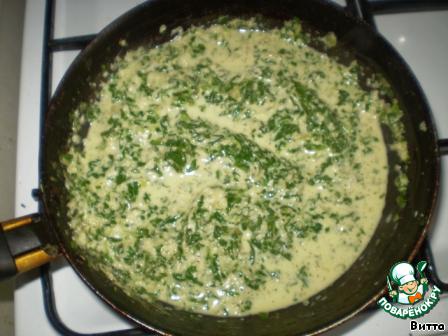 Добавить шпинат, сливки и раскрошенный голубой сыр