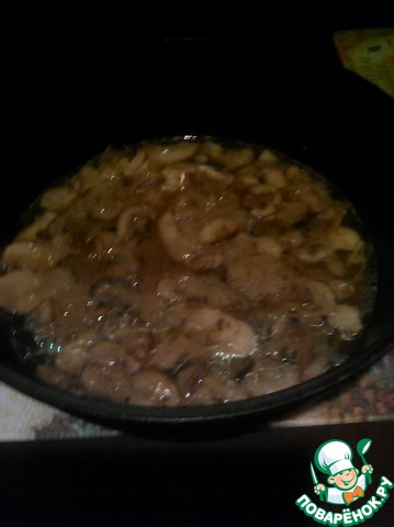 Добавляем грибы и обжариваем их.