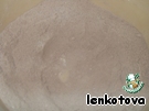 Делаем в центре углубление и в него вливаем масло, воду, желтки, ванилин. Кофе завариваем 1 ст.л. кипятка, остужаем и вливаем в смесь. Перемешиваем до однородности. Я перемешивала без миксера - и так все прекрасно размешалось.