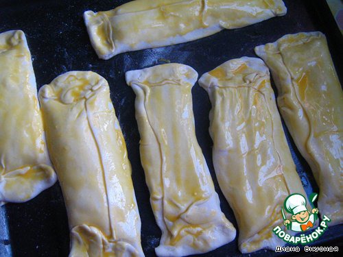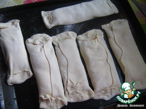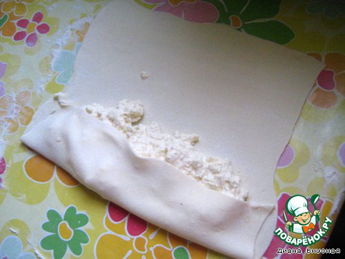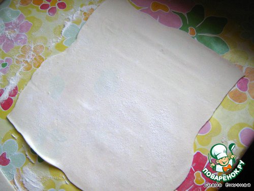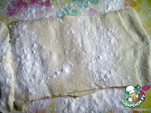 теперь раскатаем тесто тоненько и разрежем как угодно (у меня ромбики)