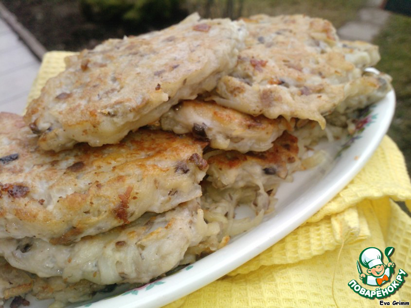 | Эти оладьи вышли на удивление сытными, вкусными, ароматными… Не требуют гарнира и очень вкусно с ними делать бутерброды, если есть кусочек свежего хлеба ))) Моя мама кушала такие «бутеры» даже с чаем и попросила рецептик ))) |