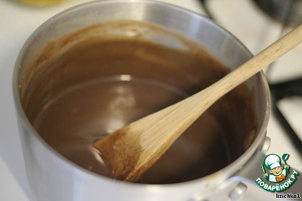 Готовим глазурь: молоко, сахар, какао, ром нагреваем на медленном огне до загустения; остужаем до теплого и смешиваем с размягченным маслом.