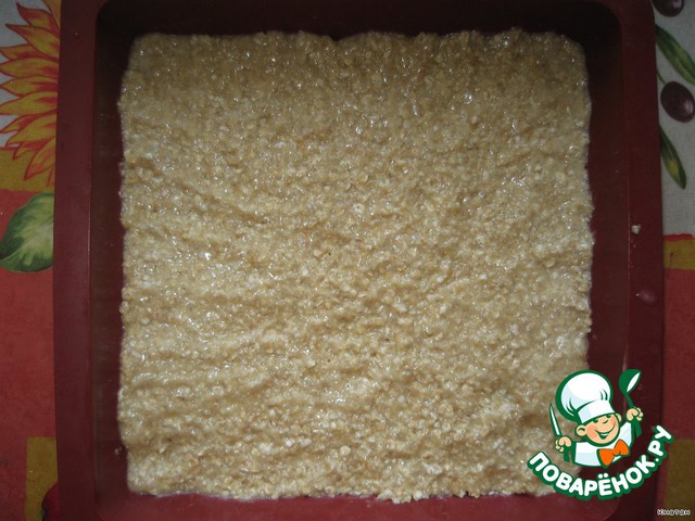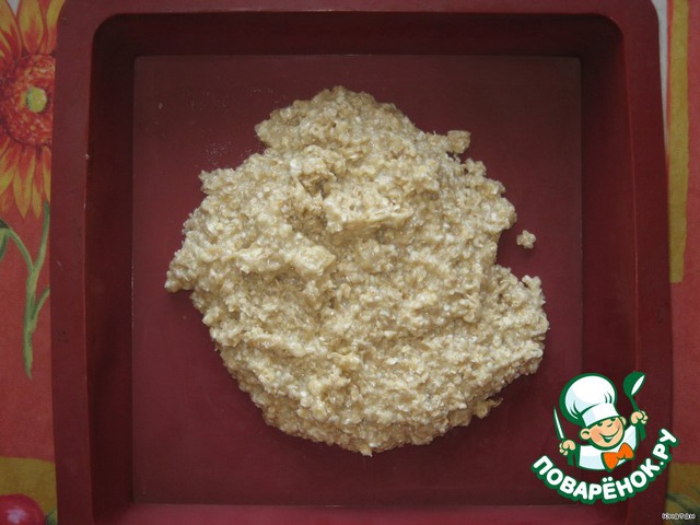 Смешать 100 гр сливочного масла + 100 гр сахара + 1 яйцо + хлопья(чтобы получилась кашеобразная масса)...