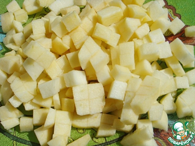 Яблоки очистить, удалить сердцевину и нарезать небольшими кубиками.
