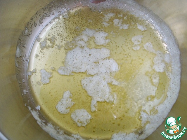Добавить 25 г. сахарного песка и хорошо перемешать, держа кастрюльку на плите.