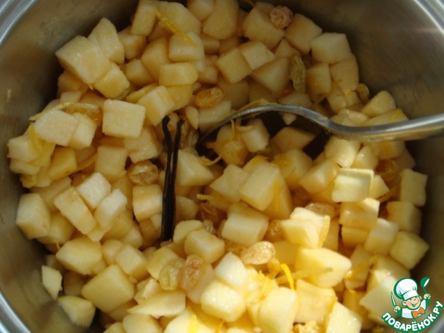 Добавить яблочную смесь и 1/2 очищенного стручка ванили.