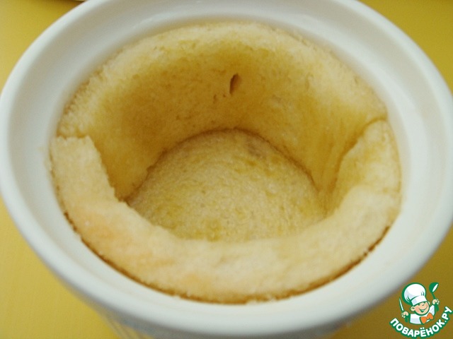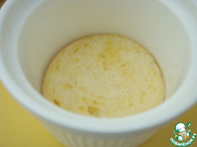 Положите по одному кружочку в каждый заранее смазанный маслом рамекин, стороной с сахарным песком вниз.